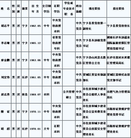 本报7月24日讯(记者 曾力力 实习生 王玺秀 彭彩 陈冉)为加强对干部选拔工作的监督,提高识别和任用干部的准确程度,今日,长沙市委组织部对市委常委会议研究同意的拟任(或提名)人选进行任前公示。