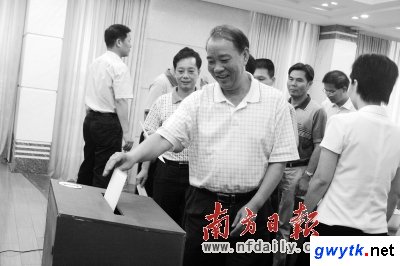 阳东对参与竞争的候选人进行投票。毕式明 摄