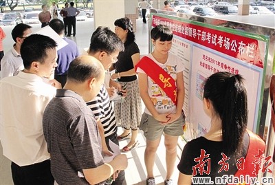 | 茂名创建公推公选,用人唯贤新平台。图为竞争性选拔处级干部考场公布。余力 摄 |