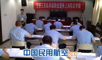 此次考试根据《民航总局、公安部、财政部、人事部关于印发中国民航空中警察总队干部选拔任用暂行办法》《中国民航空中警察总队副科级职位竞争上岗暂行办法》等文件精神,为进一步推进和深化人事制度改革,在支队、大队内部建立竞争择优机制,促进优秀人才脱颖而出,努力建设一支高素质、专业化的空警队伍,经空警三支队党委研究决定而开展的一次竞争上岗考核活动。本次竞争上岗考试共分七个阶段:报名、资格审核、理论考核、面试、民主测评、党委测评、组织考察,严格落实考核制度,由支队、所在公司人力资源部门、纪检和保卫部门工作人员组成考察组,对参加报名竞争考核上岗人员采取考核、测评、查阅档案、组织谈话等程序,综合评估评估参加竞争上岗人员的能力,为“想干事,能干事,干成事”的民警营造环境,创建机会,搭建舞台,找到位置。
