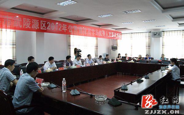 张家界在线9月3日讯(分站记者 杜修庆)9月2日,武陵源区2012年公开选拔高学历优秀人才面试如期进行,来自全国各地的42名高学历优秀人才参加角逐,面试分两个考场同时进行,面试组织方精心部署,周密安排,程序规范,细致严谨,确保面试过程公平公正。正式面试前,区委书记朱用文,区委副书记侯家骥,区委常委、组织统战部长向罡看望慰问所有参加面试的考生。朱用文勉励大家,一定要放下包袱,放松心情,认真思考,细致作答,取得优异成绩。