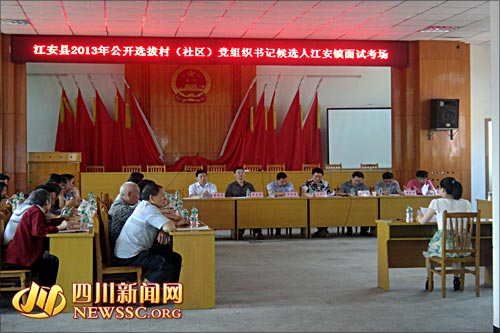 四川新闻网宜宾5月21日讯(曾广琼 邹锦容 刘美景 记者 石兴旺)作为四川全省村社区干部换届试点,宜宾市江安县江安镇在启动换届工作前后,可谓做足功课,更是引入多个举措确保换届工作务实有效受认可。5月20日上午,在该镇机关会议室举行了一场别开生面的面试,由领导、党员群众共同对报考河中村和七社区党组织书记等职的11名候选人进行面试把关。